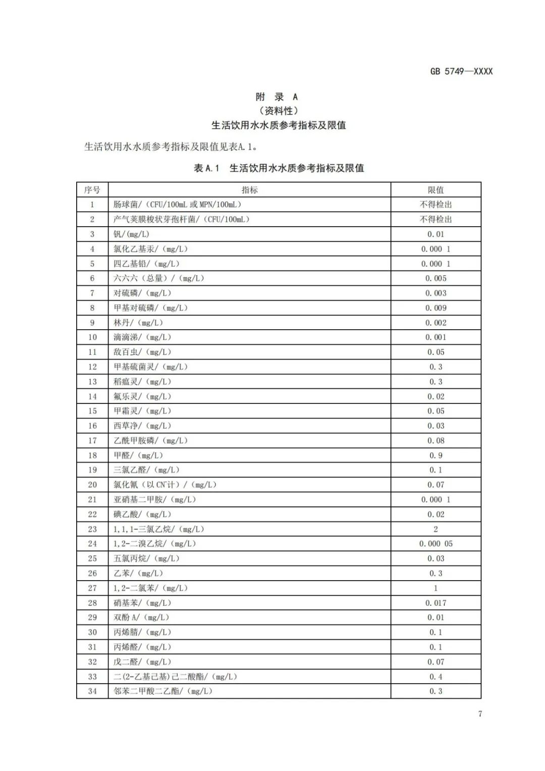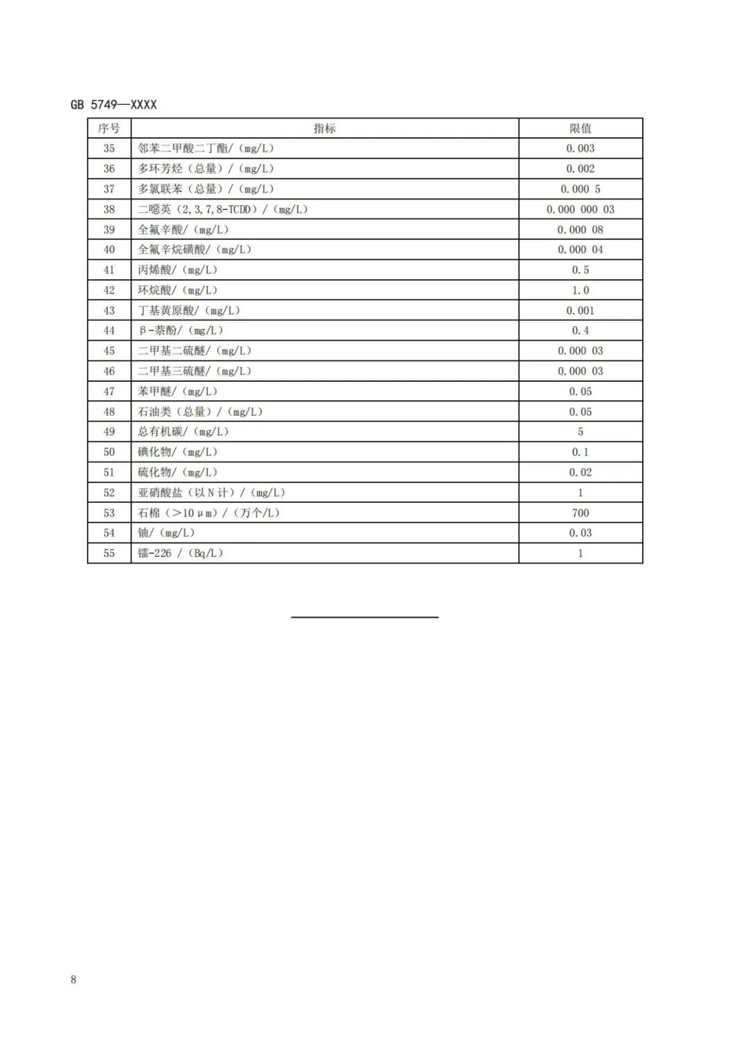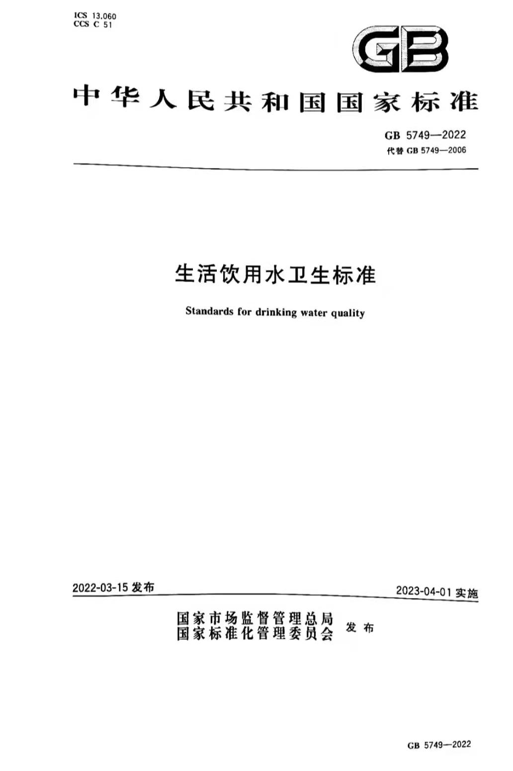 《生活飲用水衛生標準》(GB5749-2022)正式發布!